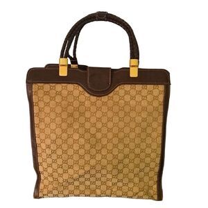 No rips tears on the leather or canvas, with wrinkles, tiny rubbing on the right right corner, tiny rubbing on corner leather