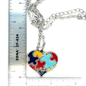 Autism Awareness Puzzle Heart Necklace Preowned Measures 16.5” L with 3” extender