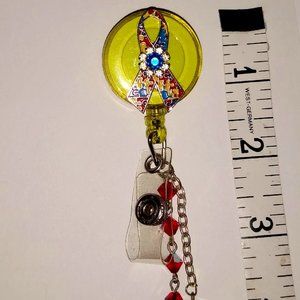 Puzzle design ribbon for Autism Awareness ID Badge Holder, handmade. Retractable 24" cord.