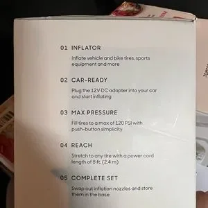 Compact design can easily store away the cable inside the unit! Now you can inflate in the dark thanks to bright LEDs for visibility and use during roadside emergencies. Compatible with all vehicles with DC 12 V power output and comes with an adapter and three nozzles.