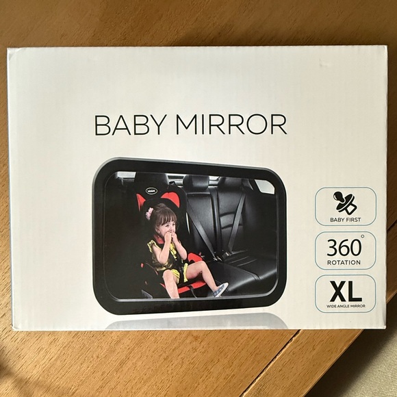 Wide angle XL baby mirror with 360° rotation for automobile. Perfect for car seats.
