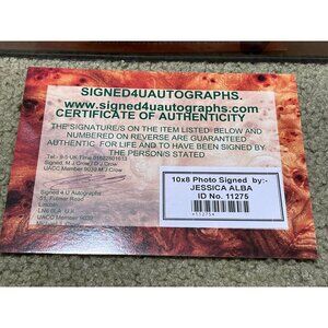 You are buying a young (2006 signed) Jessica Alba Autograph. This is in a top loader and is a 8x10”hand signed Photo of her. She is great in the Sin City movies. This has the coa, date and where signed on card stock coa. This was certified years later by a UACC member and was signed in Hollywood at the scream awards! This will come well protected between 4 layers of protection. I put a good price on it which is well below all the rest so no need to ask for more. Lucky winner to pay for delivery confirmed mail. We ship within one day of payment and leave positive feedback after we get positive five star feedback. Contact us if you run in to any problems. We are a TOP seller as we offer only the highest quality at a decent price and ship lightning fast! You can also check us out on our Facebook page - Rare Collectibles.