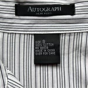 Autograph White with Black and Lavender Stripes Button Down V-Neck Blouse Size S