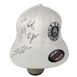 This Autographed 100 Monkeys 2011 Liquid Zoo World Tour Hat is looking good! Autographed on the front of the hat and bill! Flexfit sticker still attached as well. Sold as pictured, thanks for looking!
