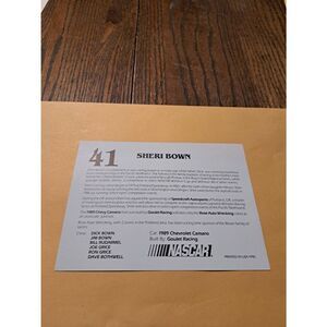 This version is hand-signed by Sheri Bown, making it a great collectible for vintage NASCAR fans and motorsports memorabilia collectors.
