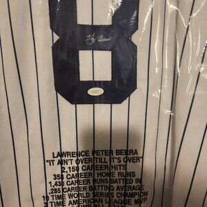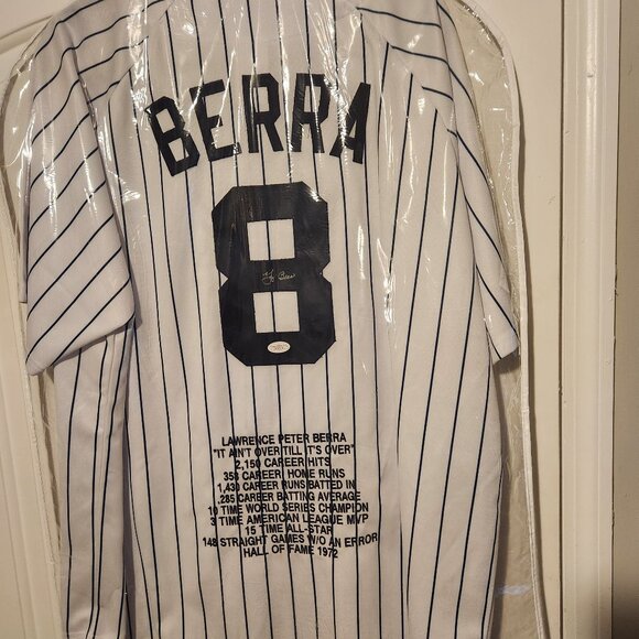Autographed Yogi Berra New York Yankees Jersey with COA by Fanatics. This classic MLB, Yankees jersey is made by Majestic, and the autograph is certified by Fanatics! Price is fairly firm; however, offers are welcome if this is too far out of your league or if you create a bundle of multiple items! Free shipping is being offered on full price offers.