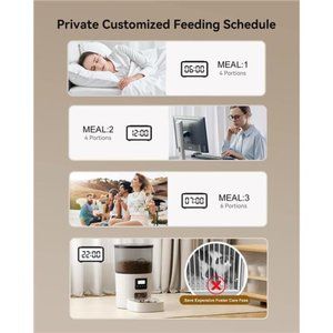 🧿🐾 Accurate and Programmable Timed Feeding & No More Wake-up Calls: Your pet gets the right amount of food on time, cat food dispenser adjustable the amount of food in each meal, up to 36 portions daily with 9 portions setting per meal (7g ± 2g). Our cat feeder automatic is a good assistant to take care of your cat/dog!