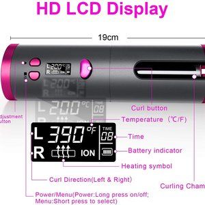 🔋 [LCD Screen & USB Charging] The LCD digital display can display: heat, timer, curling direction and battery level. Built-in 5000mAh lithium battery, USB (Type C ) 5V/2A charge cable included,3-4 Hours fully charged time can work for up to 60 minutes. With automatic shutdown function, saving power and ensuring application safety.