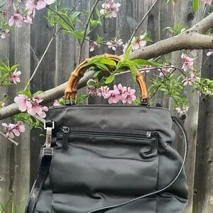 The Gucci Bamboo bag in gray nylon is a stylish and versatile accessory for women. Known for its luxury and high-quality craftsmanship, Gucci is a top choice for those looking for a chic and sophisticated handbag. The bamboo design adds a unique touch to the classic gray nylon exterior, making it a fashionable and eye-catching piece for any outfit. Perfect for everyday use or special occasions, this bag combines practicality with a touch of luxury.