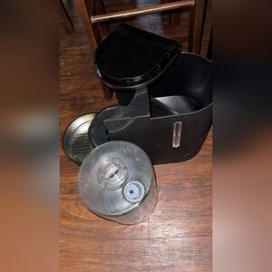 Used and still works. No automatic buttons, but once you fill both sides, food and water will repeatedly refill until empty.