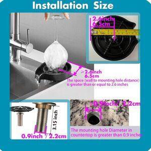 Wide application: Installs in a standard countertop/sink hole, can rinse most standard drinkware such as wine glasses, baby bottles, and other cups less than 3.52 inches. This black glass rinser for kitchen sink can also be used for commercial cup washer or rv glass washer. This black sink glass rinser also be used as sink cup washer attachment or kitchen sink cup washer, can save the time of your glass washer.