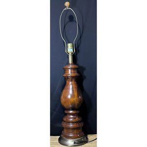 Vintage 1960s Automax #11418 large table lamp 32 3/4” high x 7” wide Made in the USA in New York. There is no shade included or light bulb. Made of real natural wood which has been stained and varnished. This lamp would fit nicely in a vintage themed or farmhouse themed room. The finial is a wooden ball, there is no shade or bulb included. Condition is very good, it is a vintage piece therefore it does show some wear but is generally in very good condition. I am unsure what type of material the base is but it is also in very good condition. Please see pictures of all sides of the lamp. Thank you for looking !!