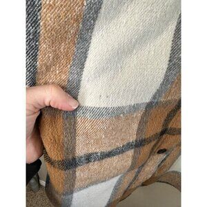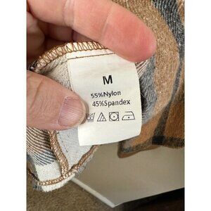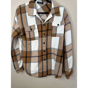 Automet Womens Brown Shacket Medium Plaid collared button up Nylon long sleeve