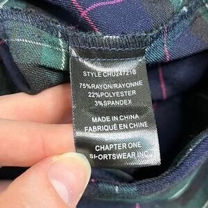 Autres Filles Pants Small Plaid Pull On Slim Straight Fit Blue Green Academic Punk