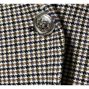 Autres Filles Houndstooth Shoulder Padded Womens Blazer Crest Buttons NWT US XL