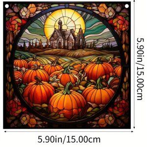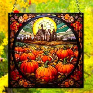 Autum Fall Scene Suncatcher Goth House Halloween Sun Pumpkin Hanging In/Outdoor