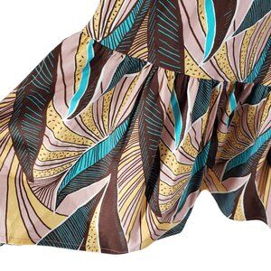 Our Della dress updates the peasant look with fun and sophistication in an African-inspired leaf print. Made with a smocked bodice and puff sleeves, the look is balanced with a tiered knee-length skirt. Wear it with the matching headband or pair it with a face mask in a contrasting pattern. Excellent condition, looks new and unworn.