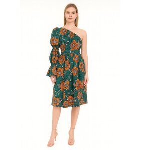 Cut for a sleek one-shoulder silhouette, Autumn Adeigbo's Trixie dress makes a vibrant statement in their colorful floral poplin. Pull-over style. Puff sleeve with elasticized cuffs.
