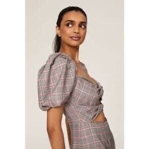 This plaid Autumn Adeigbo jumpsuit is on-trend with a roomy wide-leg fit and sexy cutouts.