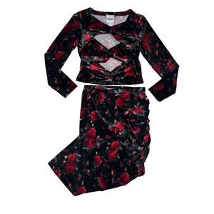 Autumn Adeigbo - Rowenna Twist Top and Midi Skirt in Black & Red NH0524-F10 Size : 8 Color : Black Red Condition : Like new Soft velvet Slit on the skirt