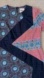 Blue geometric print cotton (100% cotton). Hourglass. Short sleeves. Crew neckline. Hook-and-eye closure. Back zipper. Knee length.