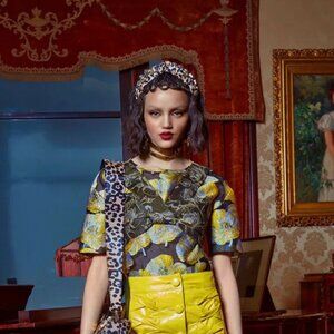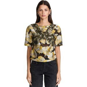 Smoky, sheer organza is overlaid in jacquard-woven flowers on this short-sleeve blouse made even more elegant by a twist overlay. Lightweight jacquard. Round neckline with button keyhole at back and hidden zip. Short sleeves. Semi-sheer mesh body, opaque twist overlay. Unlined. Shell: 54% polyester/20% acrylic/17% nylon/9% wool. Trim: 83% polyester/17% silk. Dry clean. Perfect condition! No flaws or wear.