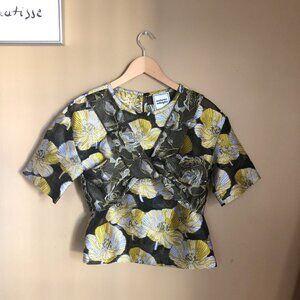 Autumn Adeigbo yellow black mixed floral jacquard Gayle blouse