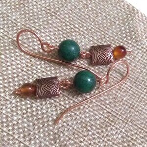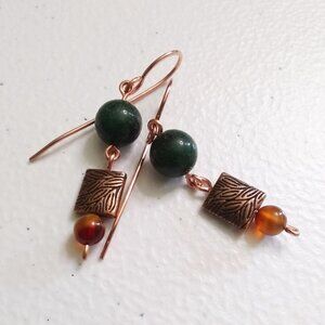 Autumn Alchemy: Copper & Forest Green Dangle Earrings with Russet Agate Warmth