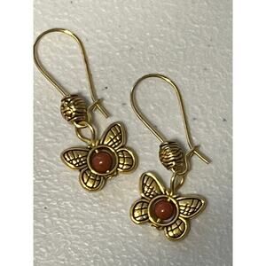 Autumn Butterfly Earrings Bohemian Gold Toned Dangles Natural Stone