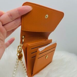Comes with a beige polkadot beaded bracelet elastic wristlet - that can stretch to hang on your wrist