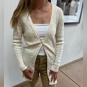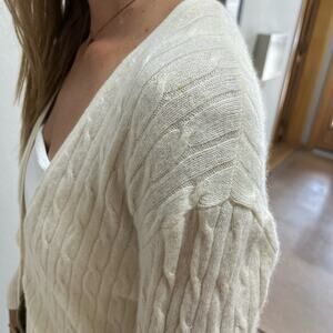 Autumn Cashmere 100% Cashmere Cable Knit Cardigan Sweater | Size Small | Cream