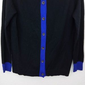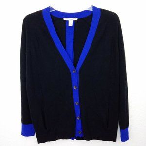 Autumn Cashmere 100% Cashmere Cardigan Sweater in black and blue color.