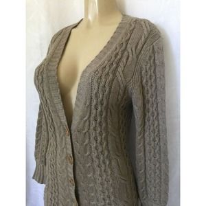 Autumn Cashmere Cardigan Sweater Cable Knit Taupe