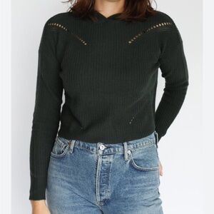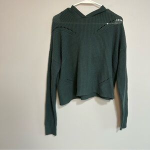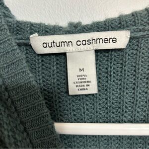 Autumn Cashmere Forest Green V-Neck Hooded 100% Cashmere Sweater Size Medium