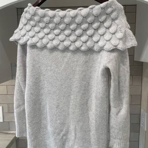 Autumn Cashmere Light Grey Sweater with boatneck scalloped neckline.