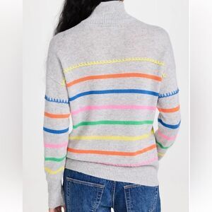 Autumn Cashmere Multi Colored Cashmere Breton Stripe Mock With Blanket Stitch