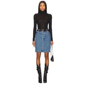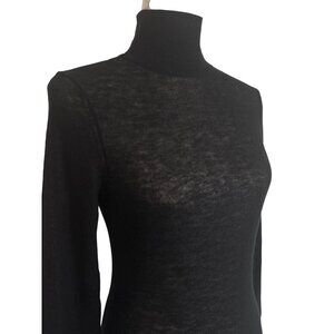 Autumn Cashmere Second Skin Sheer Mock Sweater in Black Medium New Knit Top