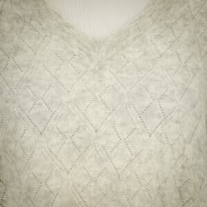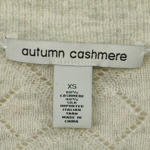 Autumn Cashmere Size XS Light Grey Gray Pointelle Open Knit V Neck Long Sleeve Cashmere Silk Blend Knit Pullover Sweater