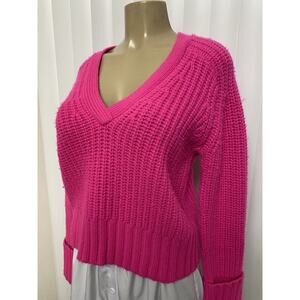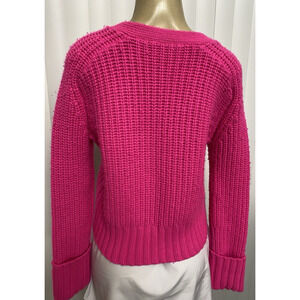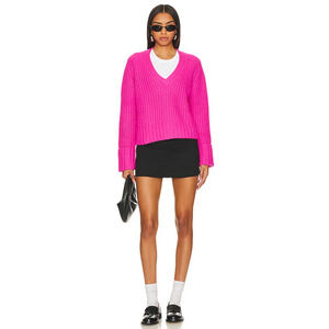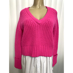 Autumn Cashmere Sweater Hot Hyper Pink Chunky Knit V Neck Pullover XS
