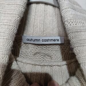 Autumn Cashmere Sz S 100% Cashmere Oatmeal Cream Cable Knit Turtle Neck Sweater
