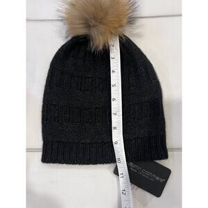 Autumn Cashmere Textured Hat with Raccoon Pom Pom Gray Cashmere Blend