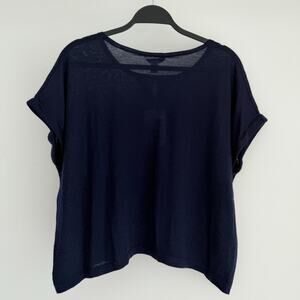 Autumn Cashmere Top Medium Navy Lagenlook Crop Lightweight Sweater Quiet Luxury
