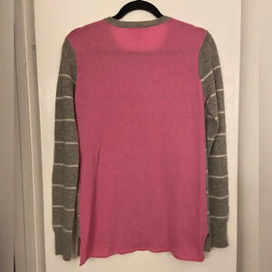 Autumn Cashmere Two Tone Stripe Pullover Long Sleeve Sweater Pink & Gray Medium
