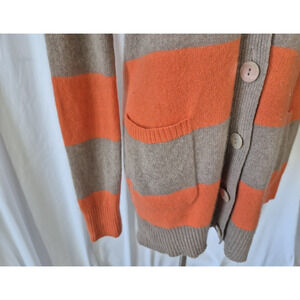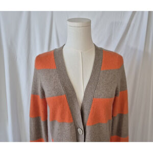 Autumn Cashmere Womens Gray Orange Striped Cashmere Sweater Small