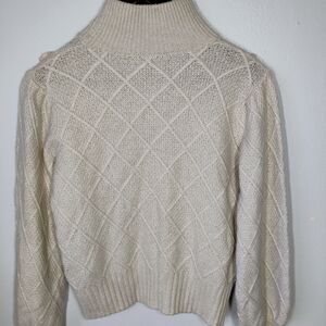 Autumn Cashmere Wool Beige Mock Neck Sweater Rosette Diamond Knit Size Medium