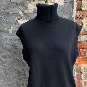 NWT Autumn Cashmere relaxed fit sleeveless turtleneck top in Black.