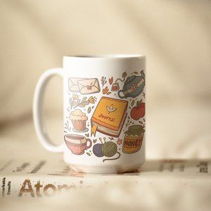 Autumn Cute Icons Coffee Mug. Thanksgiving Coffee Cup. Fall 15oz Ceramic Mug.