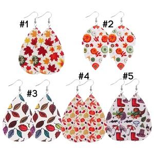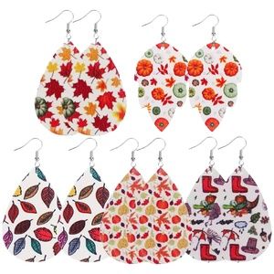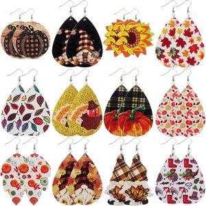 Autumn Earrings Faux Leather Leaves Turkey Rain Pilgrim Thanksgiving Dangle NEW