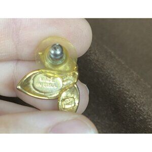 Autumn Enamel & Gold-Tone Leaf Earrings Tear Drop Stud Orange Tan Yellow 1" USA Made. Pre-owned, good condition.