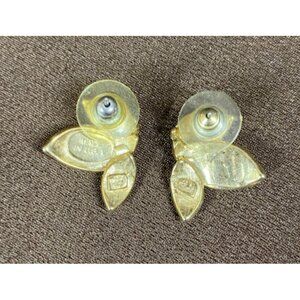 Autumn Enamel & Gold-Tone Leaf Earrings Tear Drop Stud Orange Tan Yellow 1" USA